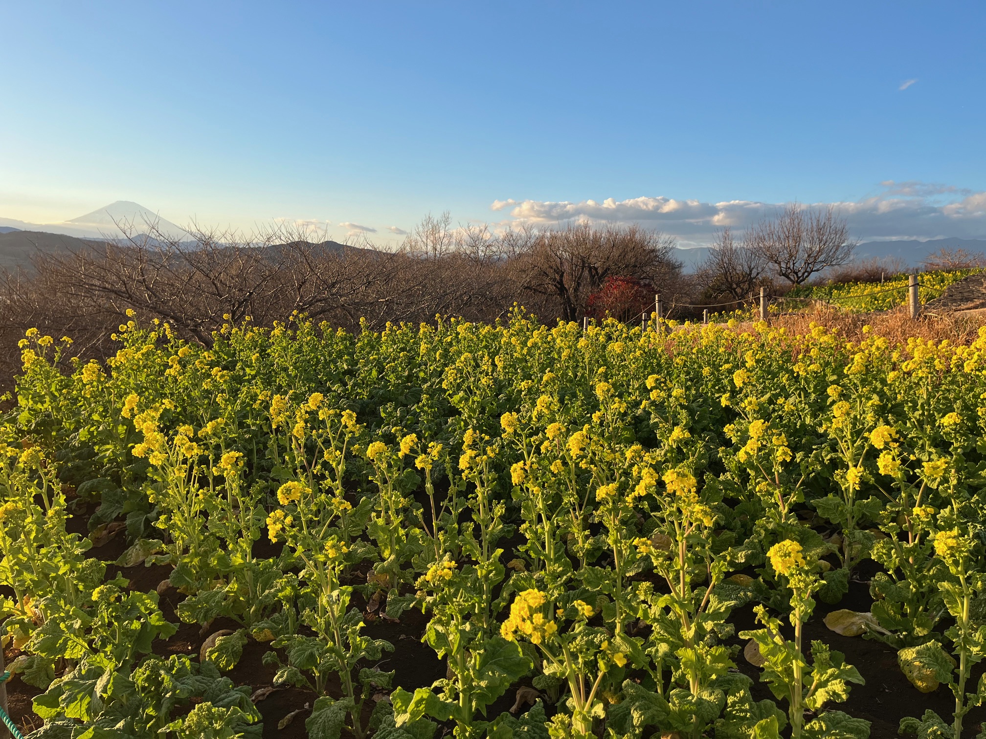 2026-01-09 吾妻山公園の菜の花は3~4分咲き、水仙は5~6分咲きです。 tweet facebook 菜の花は吾妻山公園山頂に咲いています。360°のパノラマと一緒に楽しめます。 1月9日現在、全体の3~4割程度の咲き具合です。 見ごろは中旬以降となりそうです。 水仙は役場登り口から頂上へ向かう途中と、浅間神社から管理棟へ向かうところに群生しています。 5~6分咲き程度です。 菜の花ウォッチングは1月10日より開催です。